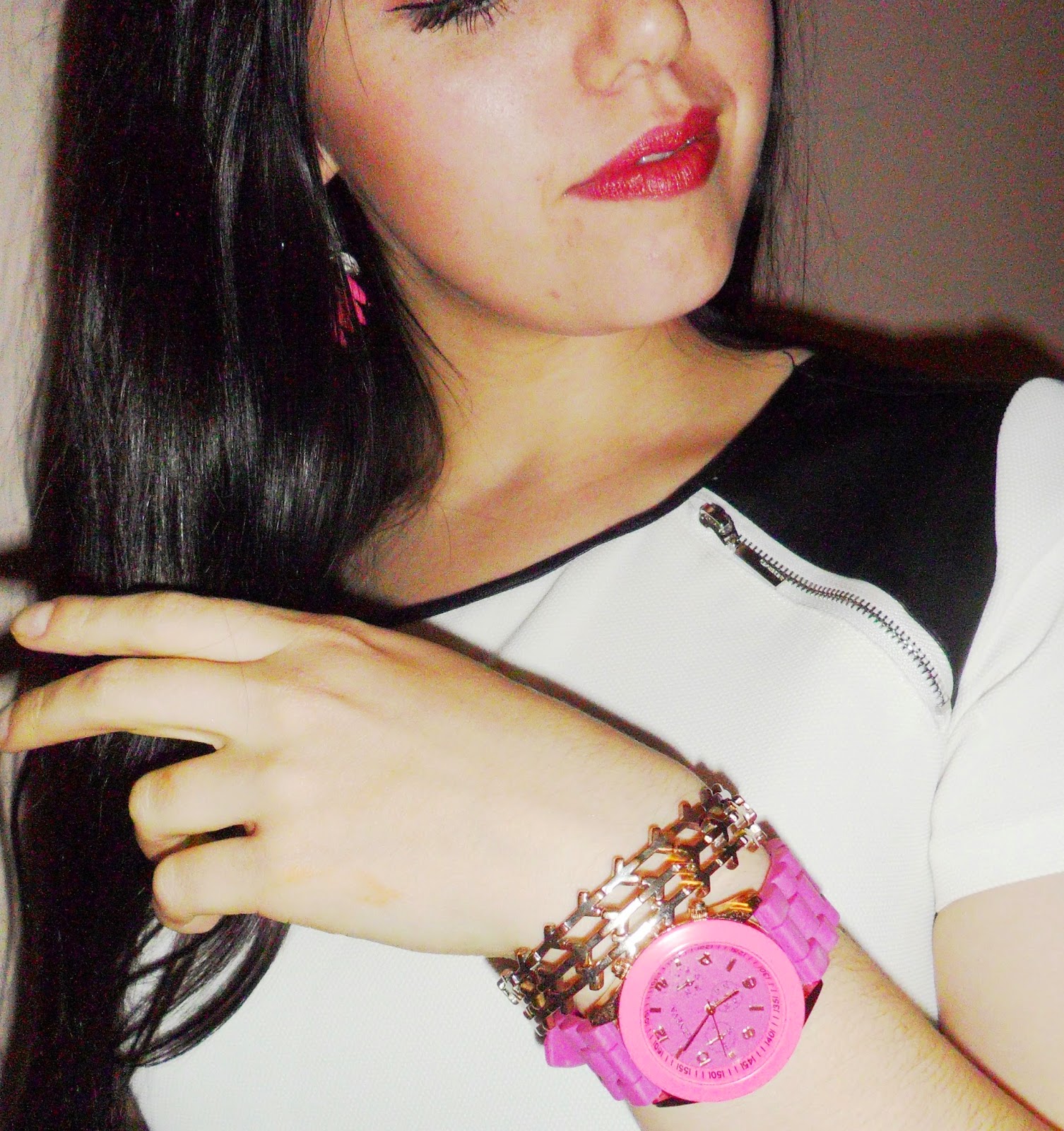 Ale zpátky k článku, mám pro vás outfit z konce týdne, fotky jsou focené bohužel jen telefonem a večer, takže světlo taky nic moc, ale aspoň něco. :D Klasicky to byl takový ten den, kdy jsem měla chuť se vyfiknout a ani nevím proč, takže jsem na sebe hodila nové šaty s koženými prvky, k tomu teploučkou chlupatou vestu a doplňky v růžových odstínech. Ty šaty jsou opravdu úžasně pohodlné a nepraktické zároveň, sedí perfektně a člověk v nich nemusí zatahovat břicho, ale problém nastal v momentu kdy jsem si chtěla sednout, protože se mi šíleně vyhrnovaly "nahoru" :D. No ale přežít to jde a rozhodně koupě nelituju, protože vzhledem jsou perfektní.