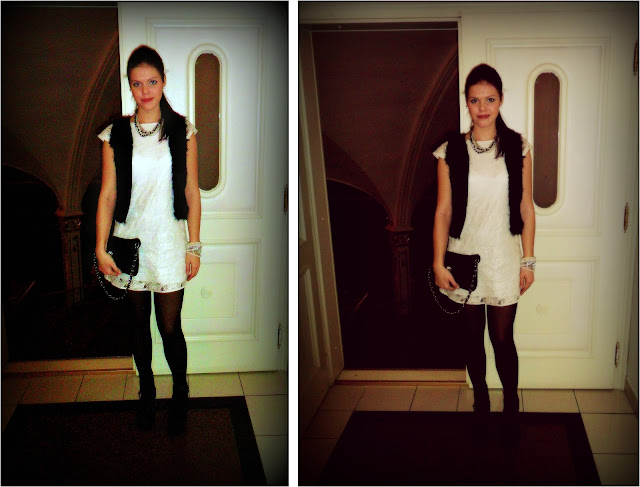 What I wore: dress by Lindex, Zara jewellery, Topshop clutch, CCC boots, Mango coat